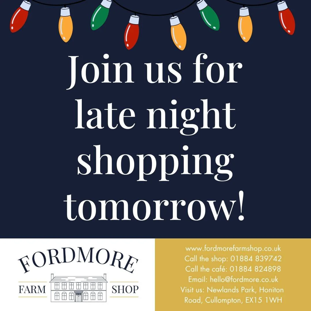 You can order hampers online here, drop into the shop, call 01884 839742 or email butchers@fordmore.co.uk to order.